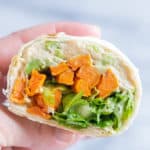 - They’re easy to prep ahead – You can roast a big batch of sweet potatoes and then easily prepare these wraps each morning.