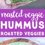 These Roasted Vegetable Hummus Wraps with Feta are a protein packed, vegetarian meal that is easy to make! Roast a big pan of veggies and have these delicious healthy wraps for lunch all week long!