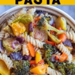 *The bag of gluten free pasta I was using just happened to be 12 oz, which is a little less than a pound. Most regular pasta comes in a 1 lb bag, which can be used you might just want to roast up a few extra veggies.