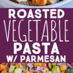 This Easy Roasted Vegetable Pasta with Parmesan is bursting with both color and flavor! It comes together quickly and is a great way to use up older veggies in the back of your refrigerator. Roasting the vegetables brings out their natural sweetness and the parmesan cheese pull everything together in this healthy and cozy vegetarian dinner.