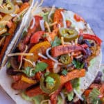 These Sheet-Pan Sweet Potato Black Bean Fajitas are quick and easy to throw together and a great way to pack in your vegetables. They’re filling and flavorful and go great with a side of beans and rice or chips and dip. Make sure to add these vegetarian fajitas to your meal plan this week!