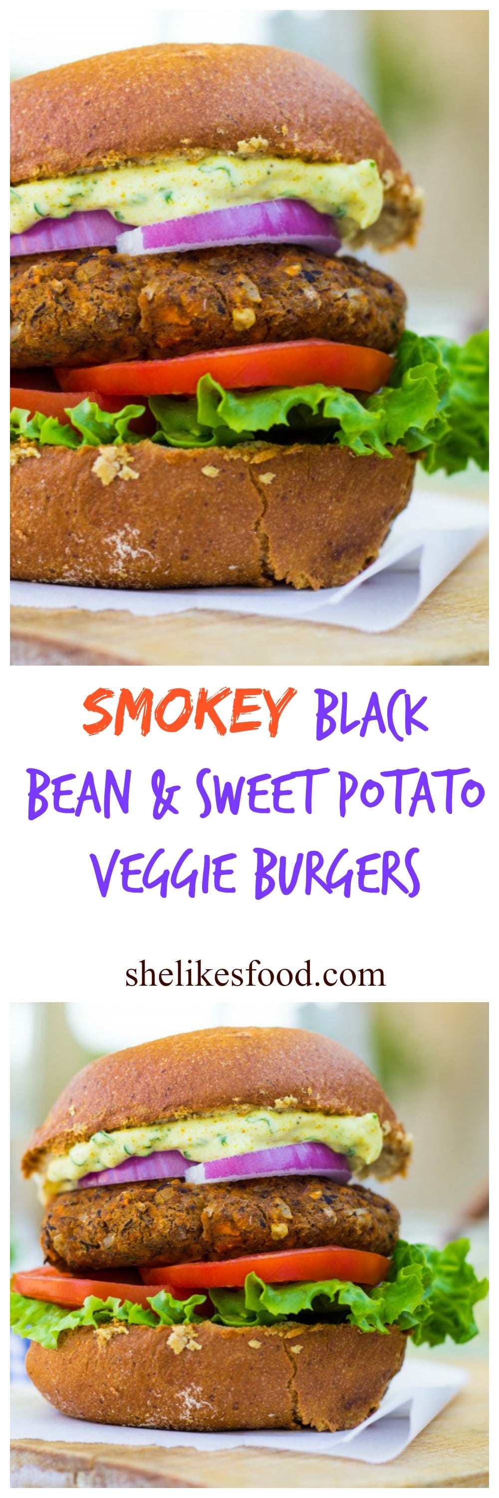 Smokey Sweet Potato, Black Bean & Brown Rice Veggie Burgers with Curry Cilantro Mayo {gf+v}