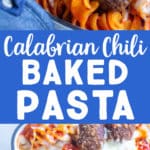 - Bake pasta with foil for about 15 minutes, uncover and bake until cheese is completely melted and pasta is bubbly, 5-10 more minutes. I like to top the pasta bake with a few small spoonfuls of Calabrian chili peppers to show what is in the pasta and to reinforce that delicious flavor. You can also garnish with fresh herbs if desired.