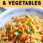 - Stir Fry Vegetables – I used a mixture of green cabbage, carrots and edamame. You can use any stir-fry veggies you like for his recipe. It’s a great way to use up any extra veggies you have in the fridge that might go bad.