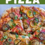 Craving a fresh, summer themed pizza for your next pizza night? This Summer Squash and Tomato Pizza has all the fresh flavors of summer, all in one cheesy and delicious pizza! The squash is caramelized to perfection and it adds so much flavor to this colorful vegetarian pizza recipe!