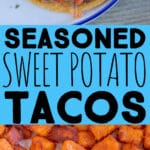 My Seasoned Sweet Potato Tacos are packed with tons of flavor and perfect for your next, vegetarian, taco night! These sweet potato tacos with black beans and cheese are hearty and filling, with each serving containing almost 20 grams of protein. Serve tacos with a side of chips and dip, or salad for a dinner that the whole family will love.