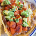 I often use sweet potato, beans, and cheese, so it’s fun to figure out new recipes to make with them. These Seasoned Sweet Potato Tacos are similar to my Crispy Potato Taco recipe and don’t disappoint. The sweet potato is perfectly seasoned and goes well with the black beans and cheese. I like to top mine with some creamy avocado and tangy lime juice. Serve with chips, and enjoy!