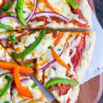 This gluten free pizza crust is chewy and delicious and will go perfectly with all your favorite toppings!