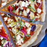 Any who, I’m totally with you on loving Greek pizza… I love Mediterranean food in general! Such a good idea to use tofu to make it a vegan Greek pie.
