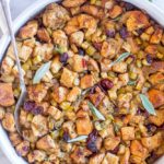 This Vegan Stuffing Recipe is packed with onion, celery, green apple and fresh sage! It’s flavorful and the perfect vegan side dish!