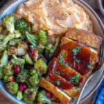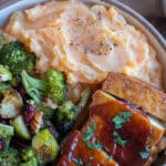 - They’re customizable – I do list specific ingredients in the recipe. Still, you can easily swap out the vegetables, add gravy to the tofu instead of BBQ sauce, or use regular potatoes in the mashed potato recipe, and leave out the sweet potatoes.