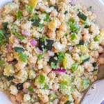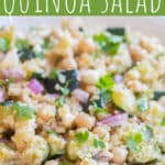 This Zucchini Chickpea Quinoa Salad is tossed in a zingy lemon dressing and packed with vegetables and protein. This delicious summer salad is great for meal prep lunches, a flavorful side dish or a filling afternoon snack. If you have an abundance of zucchini right now, this delicious quinoa salad is the perfect thing to make with it!