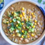 This creamy Zucchini Corn and White Bean Chili is packed with protein and flavor! It’s a great budget friendly vegetarian dinner recipe that is perfect for these cooler fall evenings. Enjoy this hearty, meatless, chili with crackers and all your other favorite chili toppings.